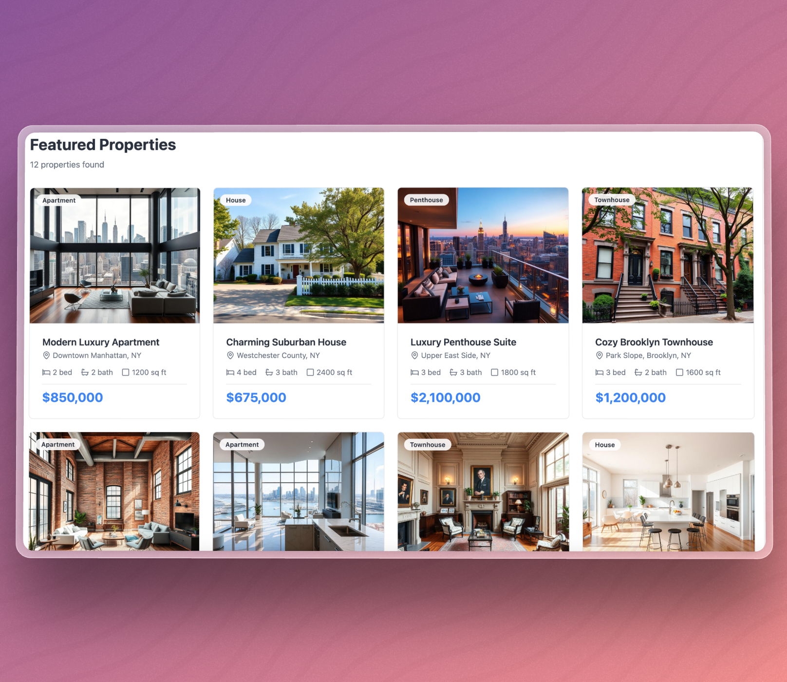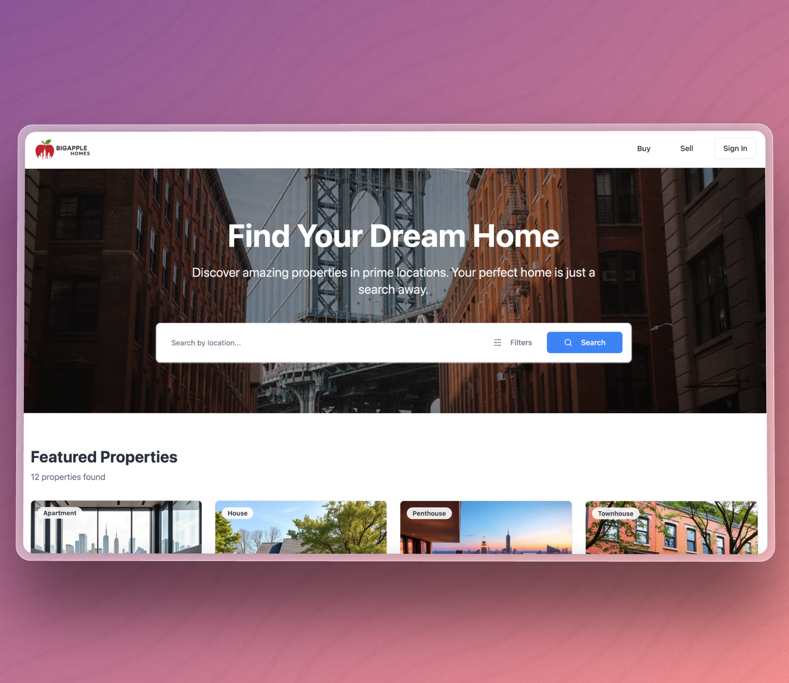 BigApple Homes is a modern, full-featured real estate marketplace designed to streamline the property search experience for buyers in major urban markets. The application provides a complete suite of tools for discovering, filtering, and exploring properties in prime locations. It is built to handle high-traffic and deliver a seamless user experience from first search to final decision.
