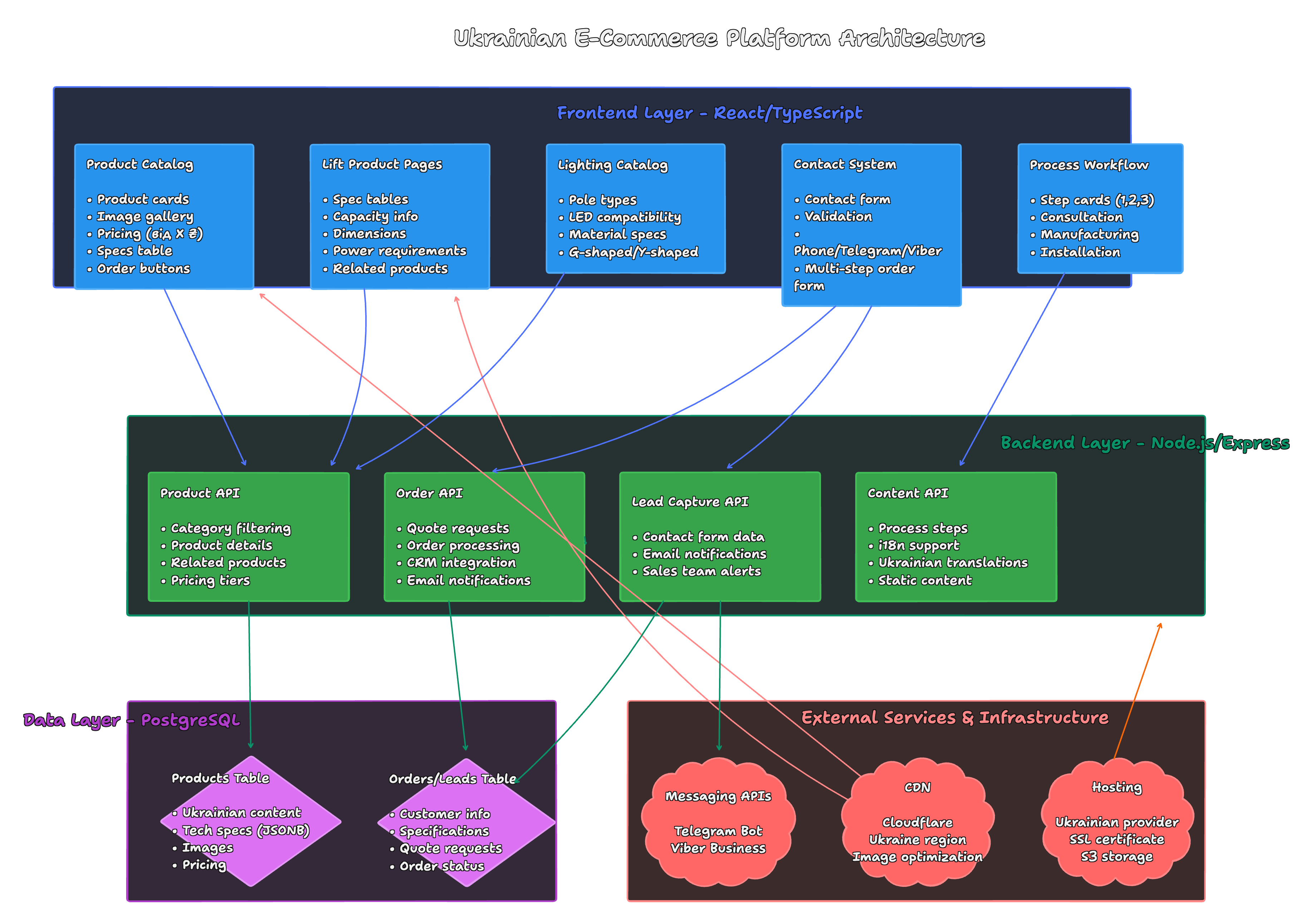 • Database: Products table with Ukrainian content, technical specifications in JSONB